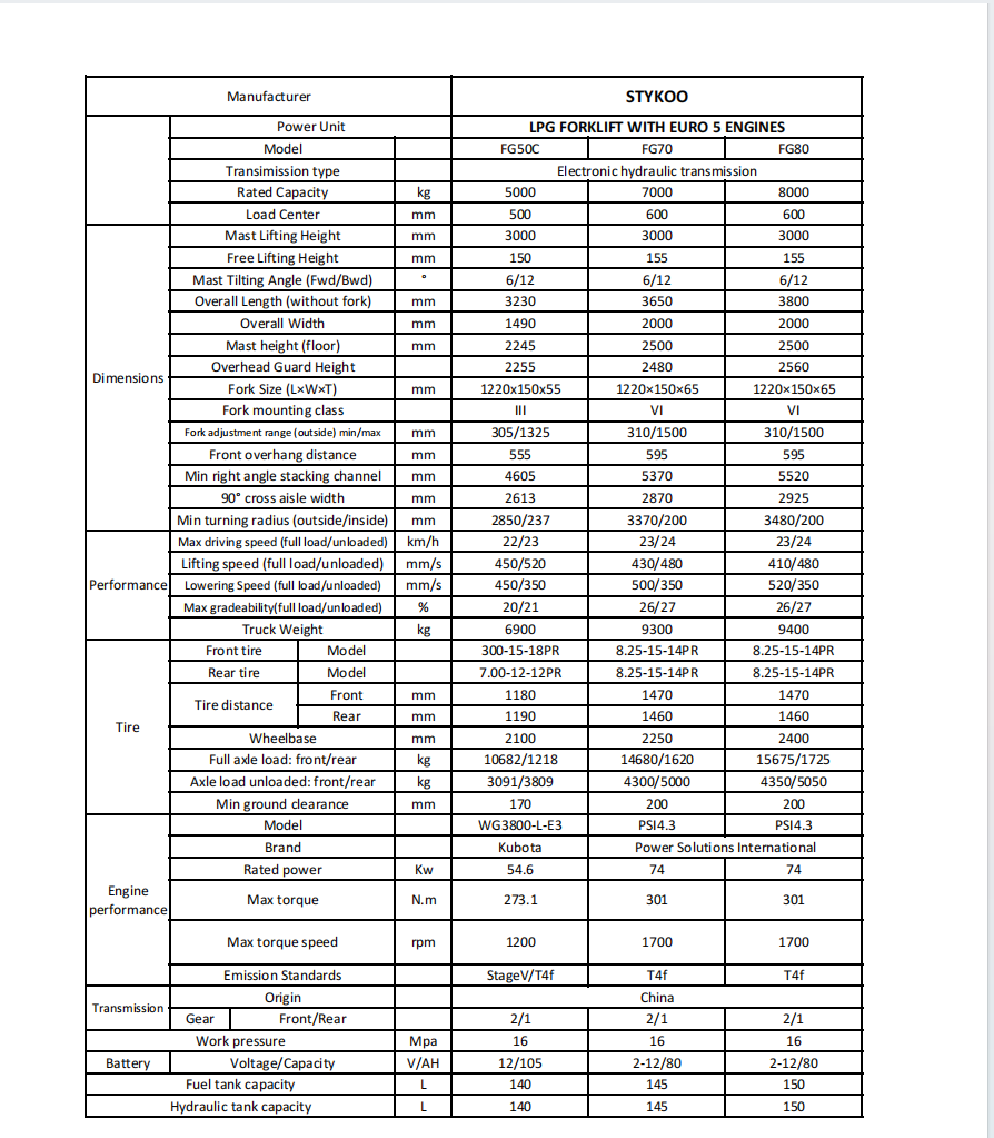 5T LPG & Gasoline Forklift